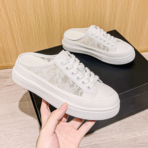 厚底镂空小白拖鞋仙女风软底系带方头帆布拖鞋韩版一脚...