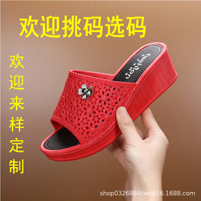 外贸大码凉拖鞋女夏2021新款时尚休闲坡跟大码一字...