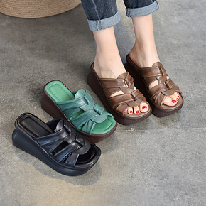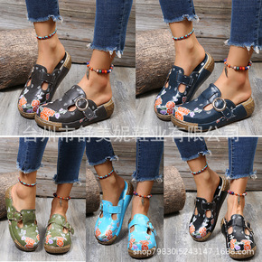 2022夏季新款民族风梅花图腾凉拖鞋松糕跟包头拖鞋...
