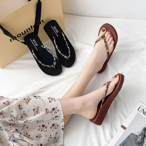 人字拖女ins潮夏外穿坡跟休闲时尚夹脚沙滩海边防滑...