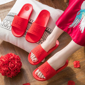 婚礼拖鞋婚庆女夏天情侣大红色浴室洗澡居家用喜庆结婚...
