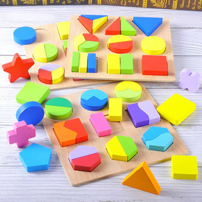 摆摊货源木质拼图早教智力宝宝积木立体幼儿童玩具手抓...