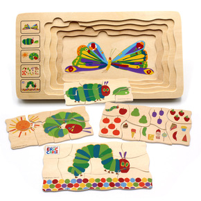跨境好饥饿的毛毛虫多层拼图嵌板卡尔经典早教故事绘本...