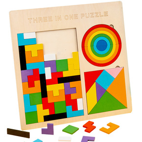 俄罗斯方块三合一拼图益智七巧板拼板彩虹桥积木蒙氏教...