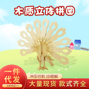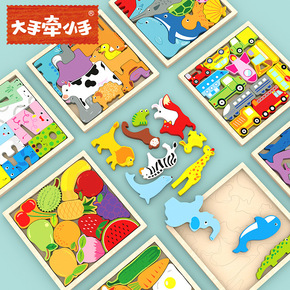 儿童木质卡通动物恐龙拼图宝宝早教3d立体木质拼图益...