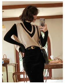 2021秋季新款韩版温柔气质修身显瘦小香风拼色针织...