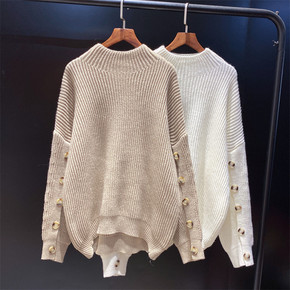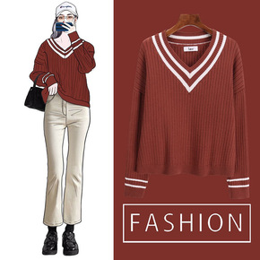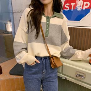 套头毛衣针织衫2021秋冬新款韩版大码 polo领...