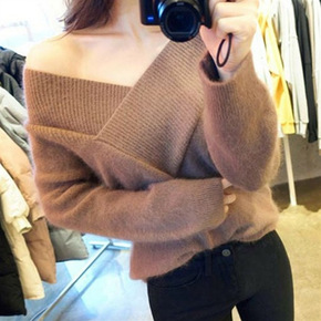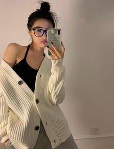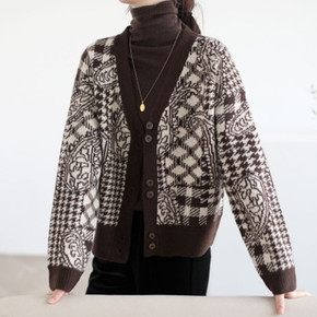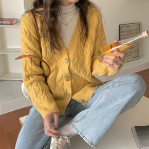 宽松慵懒风长袖开衫毛衣女2021秋冬新款韩版加厚V...