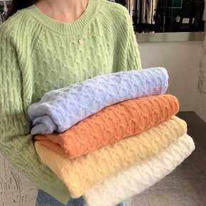 女士罗__纯系学院羊毛大麻花宽松毛衣外套女21秋季...