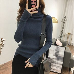 高领毛衣女修身秋冬加厚套头短款长袖紧身显瘦内搭女士...