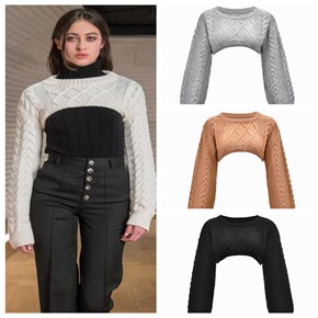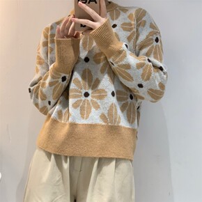 2021秋冬复古圆领套头针织衫太阳花短款毛衣女新款...
