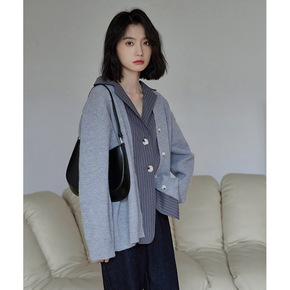 2021秋冬新款假两件西装领毛衣开衫外套女Ins潮...