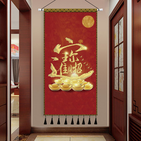 福字玄关挂画中式红色年画走廊过道装饰画竖版百福图客...