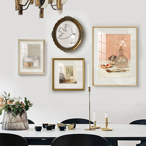 轻奢餐厅装饰画饭背景墙面美式组合挂画客厅法式复古小...