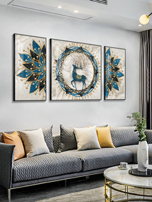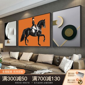 轻奢客厅装饰画现代简约大气高档骑马沙发背景墙挂画北...
