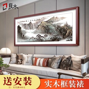 新中式沙发客厅背景墙装饰画招财挂画办公室山水画风水...