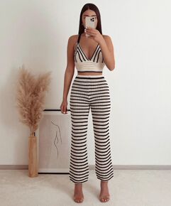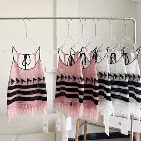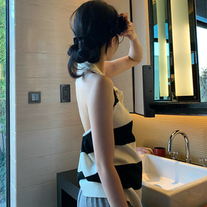 欧美ins2022春季新款 条纹针织挂脖背心+条纹...