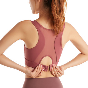 跨境欧美防震聚拢瑜伽运动文胸速干网状镂空健身背心美...