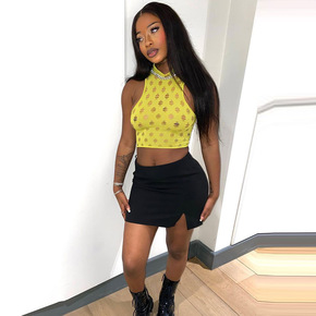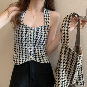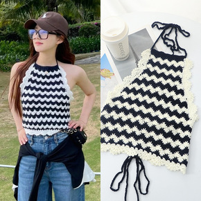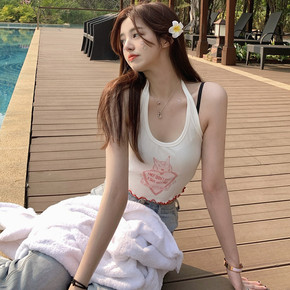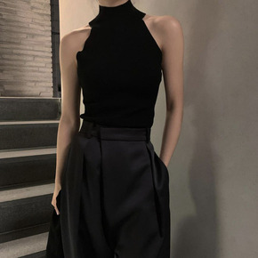 [现货]赵露思同款性感无袖挂脖针织背心内搭外穿度假...
