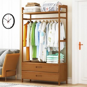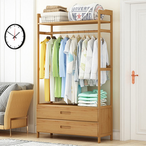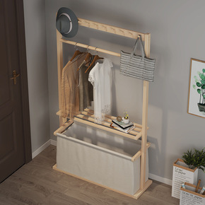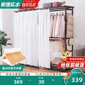 简易衣帽架实木卧室挂衣架衣柜落地衣服包简约现代多功...