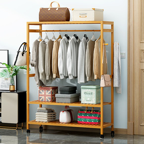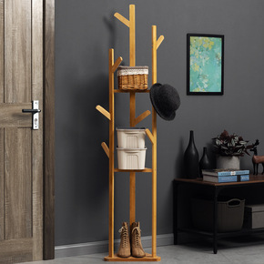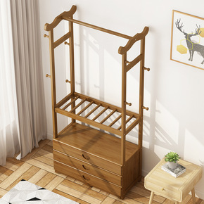 简易门厅柜鞋衣帽架楠竹晾衣架落地家用卧室挂钩换鞋凳...