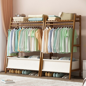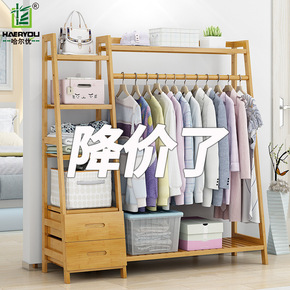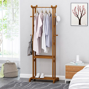 .楠竹衣架落地立式卧室挂衣服架子小型简约晾衣杆实木...