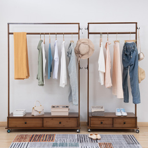 实木衣帽架木质衣架落地卧室衣服架挂衣架简易置物架带...