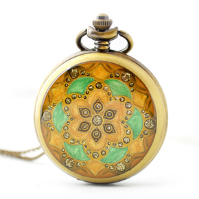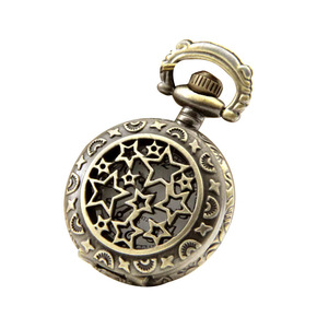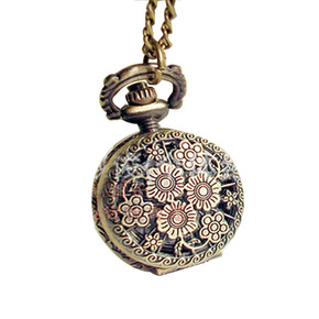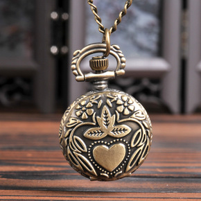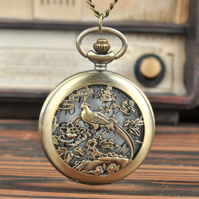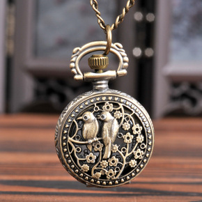 厂家批发潮流跨境镂空雕刻花朵小鸟石英怀表项链石英怀...