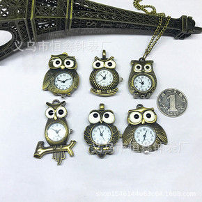 2016欧美潮流复古女款怀表精美滴胶小脚猫头鹰合金...