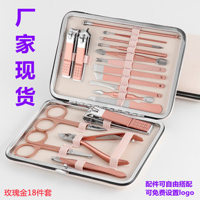 工厂现货直供玫瑰金指甲剪套装18件套不锈钢礼品装指...