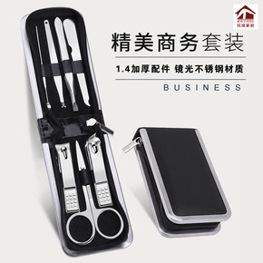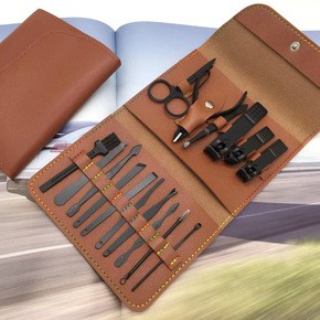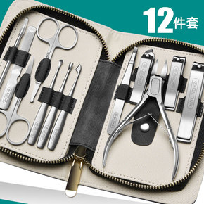 厂家现货12件套不锈钢指甲刀套装黑色高档定制美容美...