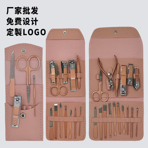不锈钢玫瑰金指甲剪套装厂家批发大号指甲钳22件套修...
