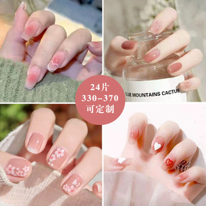 网红爆款穿戴美甲假指甲可拆卸长款闪粉爱心链条美甲贴...