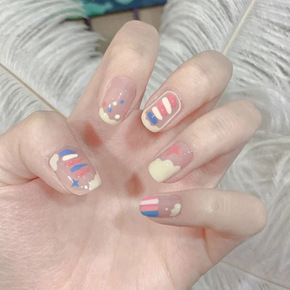 夏日热销新款脚指甲贴片美甲成品 短款黑白跳色涂鸦晕...