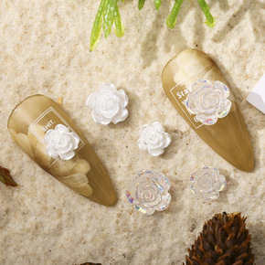 爆款美甲山茶花珍珠花网红白玫瑰小号树脂彩色AB极光...