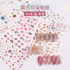 小红书长岛冰茶美甲雏菊花朵树叶子贴纸不掉色防水3D...