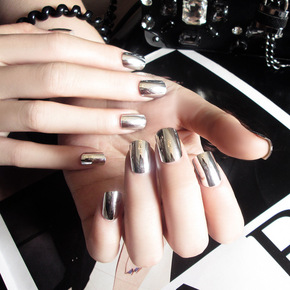 成品美甲24片盒装 假指甲 镀银手指甲 新娘美甲贴...