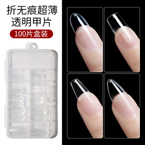 盒装美甲甲片折无痕100片透明短款方头t型水滴全贴...