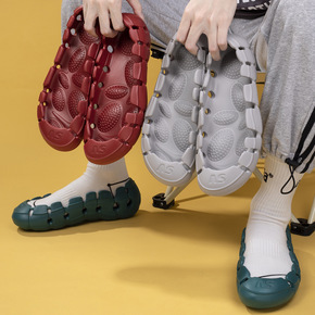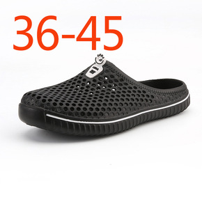 跨境大码情侣款夏季透气洞洞鞋男半拖软底防滑镂空轻便...
