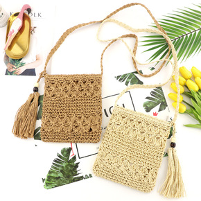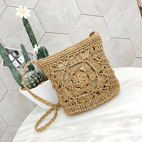 夏季草编包女韩版百搭斜挎钩针编织包复古休闲沙滩花朵...