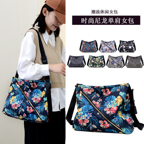 斜挎包女2021新款休闲印花尼龙布包字母单肩包大容...