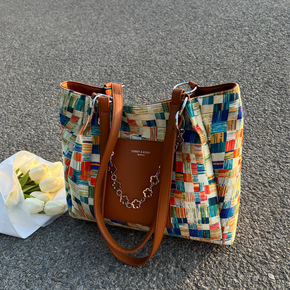 2022春夏新款大容量女士单肩包手提包简便旅行包锁...