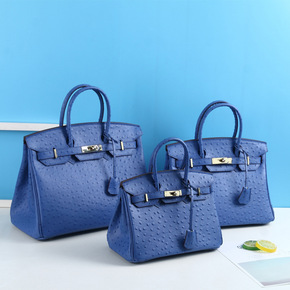 大容量鸵鸟纹牛皮铂金包时尚欧美风2022新款真皮单...