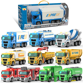 儿童合金滑行工程车挖掘机油罐车带拖车自主搭配组合套...