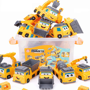 爱斯祺百变磁力积木拼装工程车益智大颗粒拼接挖掘机汽...