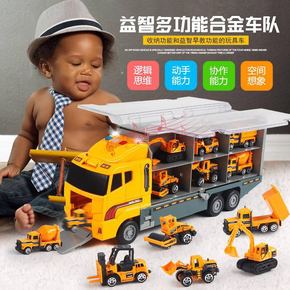 大号工程车儿童玩具车套装合金挖掘机模型消防车收纳玩...