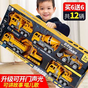 儿童工程车挖掘机玩具车男孩套装仿真模型推挖土机搅拌...