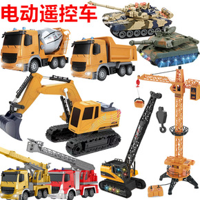 遥控车工程车电动坦克汽车模型吊机挖掘机搅拌机儿童玩...