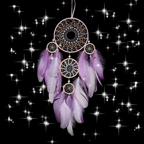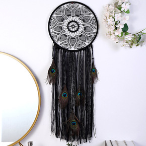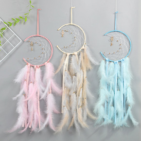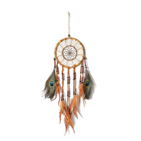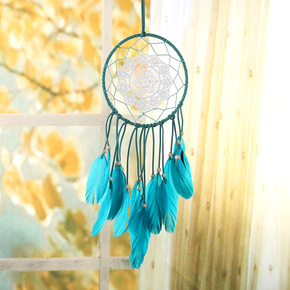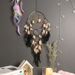 原创工艺品捕梦网 欧美风室内手工羽毛风铃印第安羽毛...