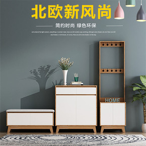 北欧实木鞋柜玄关柜现代简约进门衣帽柜挂衣架多功能储...